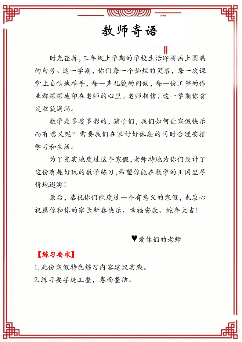 26春马年三年级数学寒假特色实践作业985文库2个月前发布关注私信7.91MB13页1312926春马年三年级数学寒假特色实践作业此内容为付费资源,请付费后查看¥3 限时特惠¥9.9黄金会员免费钻石会员免费登录购买付费资源 开学季半价抢会员,享受免费下载 点击开通 文章目录 1 封面图 2 文档部分预览截图 3 下载地址 第1页 / 共13页 第2页 / 共13页 第3页 / 共13页 第4页 / 共13页 试读已结束,还剩9页,您可下载完整版后进行离线阅读 版权声明 1 本网站名称: 985文库 2 本站永久网址:https://985wenku.cn 3 本站资源部分来自网络,由老师收集整理,如有侵犯你的权益请联系管理员E-mail:240407401@qq.com 我们会第一时间进行审核删除。 开通网站会员,全站资料免费下载 THE END三年级资料 文本预览 2025-2026学年第置期年家册2姓名学号: 查看更多 收起部分 喜欢就支持一下吧点赞9 分享QQ空间微博QQ好友海报分享复制链接收藏