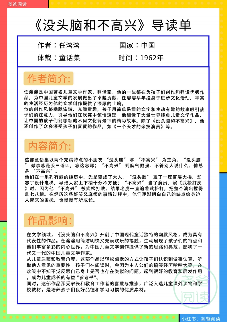 1-6没头脑和不高兴整本书阅读精读单带答案985文库1个月前发布关注私信7.76MB20页133251-6没头脑和不高兴整本书阅读精读单带答案此内容为付费资源,请付费后查看¥5 限时特惠¥9.9黄金会员¥3钻石会员¥2登录购买付费资源 开学季半价抢会员,享受免费下载 点击开通 文章目录 1 封面图 2 文档部分预览截图 3 下载地址 第1页 / 共20页 第2页 / 共20页 第3页 / 共20页 第4页 / 共20页 试读已结束,还剩16页,您可下载完整版后进行离线阅读 版权声明 1 本网站名称: 985文库 2 本站永久网址:https://985wenku.cn 3 本站资源部分来自网络,由老师收集整理,如有侵犯你的权益请联系管理员E-mail:240407401@qq.com 我们会第一时间进行审核删除。 开通网站会员,全站资料免费下载 THE END一年级资料 文本预览 《没头脑和不高兴)》全本精读阅读手册导读单一年级(L1)读书笔记精读答题单9中国器默儿童文学创作·任溶溶系列000中国儿童文学创作没头脑和TOAOXINe配套答案任系列任溶溶/不高兴头脑和不高兴配套电子书任溶容任溶溶否数正少年儿重台脱杜小学精读 查看更多 收起部分 喜欢就支持一下吧点赞5 分享QQ空间微博QQ好友海报分享复制链接收藏