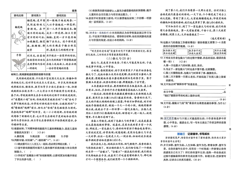 D不畏严寒的梅花虽没有迎春花那样明艳,但它在禀列寒冬中①为什么喜欢和他们一起玩留第○单元单元培优·情竟卷独能芬芳,论释着生命的服。②体的父昏时徐吃零食的色度是怎林的?除了收集身边人的童年故事,优优还便集了书籍中的童年③在帝里上的小学?道时间:0分钟A满分:0分硒得分:数率,10.小本在讲述童年故事时,用三个结构相似的语句突出了夜晚6优优收集到了一些童年诗句,对加点字问的解释有误的是事一校园的静”,清你仿照小本的讲述写一写运动会上同季们跑项?()2分)王题情阅编纷童年故事分享会步的“快”。(3分)A章清泡塘水清陵(就岸)夜晓的校阁很静,静得能听到食己的呼城声,静年能听见载们都有五形编粉的童年,童年是人生的开始,收是我们量B雅子金拉脱晓冰原皮的致子)风火过的声音,静得艳听到钟表的嘴塔声。气真的时光。五年领(1》班将举办练粉童年散奉分享会,让我们C昼出素回夜填麻(把麻遂成线》泰代优一起参加活骑吧!D山微落日浸事潢(水中的波纹)活动一收集童年,精彩纷星7.语丈委图(衡考法·题型创所》优优给课本中的童年故事做了11,活动中,培培随意打斯问学讲话,老师看到这一现象后烟要劝下面是优优制作的童年故喜单,记录卡,其中不正确的是娜一项?〔)(2分》阻培培,他该怎样说?请你以老师的口吻击行表述。(4分)童年故事单B人爷爷《粗父的因予)《月是故多用》《博花魂】童年的夏天,我常常在国子里国澳。天色攻晓,早舌动二童年游戏,港养童心是的h0die()和娇诞在花丛中邮咖起每。到了作著:黄江作著:季淡林作者:感营项历史格久的兴制游戏是父等口童年金活的重要组成都分,午,#老ming huiing huing()她飘在澄源的水思想老物:表达了作恩想感情:抒发了作思想感情:表现了作一起去看一下父年们的童年生溢吧!面上,微度湖过,泛起阵阵造树。修晚,我拿看c加ou餐对祖父的像象和财督对故多的思之情者思金家乡,春密扫童年)下随查除草,体验着劳功的宝年生播的保深怀念国的深常。(一)童年游戏(13分)故事》在yúnù(乐规。因子为戒是铸了自向畅想的天地。【后来,我去8优优在古诗中探寻到了古人的童年趣事与动人就情。(?分)材料一:民间醉戏的意义过风光待流的江角,到过气势维纬的荔山,但它们每不【导看古人族宣年】读着范成大的“在宾际的薄成过程中,儿童的多种感官以及远动器官都及家步网子业我境来梦蒙,】我不得不cheng r心n”,我们感受到了乡材儿童学种瓜的淳会处于十分浩获的状态。鳞加,奔范夹和跳庆夹的游戏能够),表对故国的春恋从来停歌朴,可爱:读着杨万里的“雅子金盆脱晓冰,提升儿童自身精环以及呼吸系统的能力,还能提升儿童的弹1根据拼音,把童年故事单朴充完整。(5分)”,我们体会到了孩靠弄冰玩耍时的快乐:读看雷震的跳能力,使辉儿童的骨酱肌肉能够健康发育:平衡美和益智2童年故事单中加点字的注音有误的是厚一项?()(2分)”,我门领略类的游戏不仅能够训结儿童的协酒能力,还能提升儿童的自A澄靠(ch6ng)B裢萧(yD到了牧童晚归的悠然C,将旎(yDD.卷毫(udm)我拉制能力以及反应能力:艺术夹和表演类的游戏则能梦使【亿母情怀阿引诗句】母爱是古诗中水恒的主题,唐代诗人孟郊3(新考法·题型创断)优优对童年故事单中易混的多音字进行了的”,以质朴而深情的得儿童充分感受到游戏的发陕情给,提升儿童的社会交往能辩析组词,影个多音字标注的读音有误?()〔2分】语言,道出了对母亲养育之恩的感激。力、语言表达能力、表见力以及审美价值观等.A提供(gdng】B供给(g3rg经过前阳的准备,峡好童年故喜分享会舞于开始了。材料二:见间等戏的介绍C煮山(yn)D,表子(ym)Q优优在问题请单中写了想要问父导的间题,请你帮地把问题补4,意年故事单中面横线的词语字形有误的是哪一项?(尊戏名称等戏简介等戏玩法充完整。(填序号)(6分)(2分)可三人至五人一起玩,亦A闲证B酸晓C蜻舞D随意(2】聪皮筋,也叫现可分两短比赛,边跳边喝5.下列与童年故事单中【】内的句子运用的修馨手法相同的是小时候吃过哪巴可以用一个河形小时候的玩悍霜耗皮筒橡皮筋、税橡皮非常有规。先由两人各率年一句?《》(2分)零食?有?容你的小学校园A夜得降缩,路灯珍开程松的经取,为晚日的行人点亮回家的路。最喜欢地爆一种题、脆酰皮防,一施把皮筋神长,其他人生活写?(3)你们在一起辄玩B春风轻抚者大地,先喝的生灵,田野时搜上了嫩绿的新装。为什么?你们为什么用这是一种造宜儿轮流跳,完成税定动作者(1)什么尊戏C神子挂在枝头,蓝红了脸蛋,秋风路过时,它们就摇见着身个问来形容?童的民间游戏为胜,中逢稀储气没的好子,像在耀人门快案摘呢皮篇,就换另一人跳