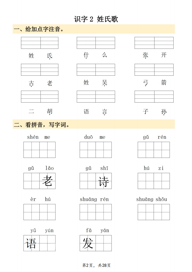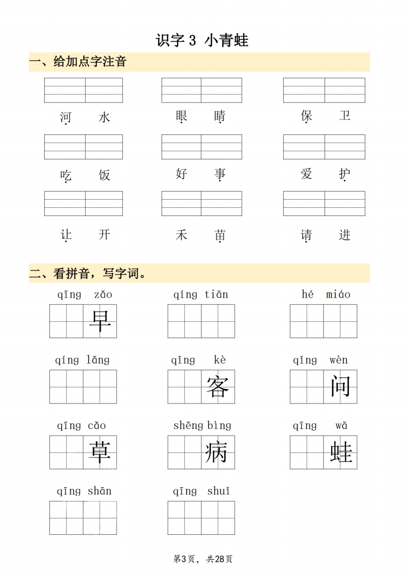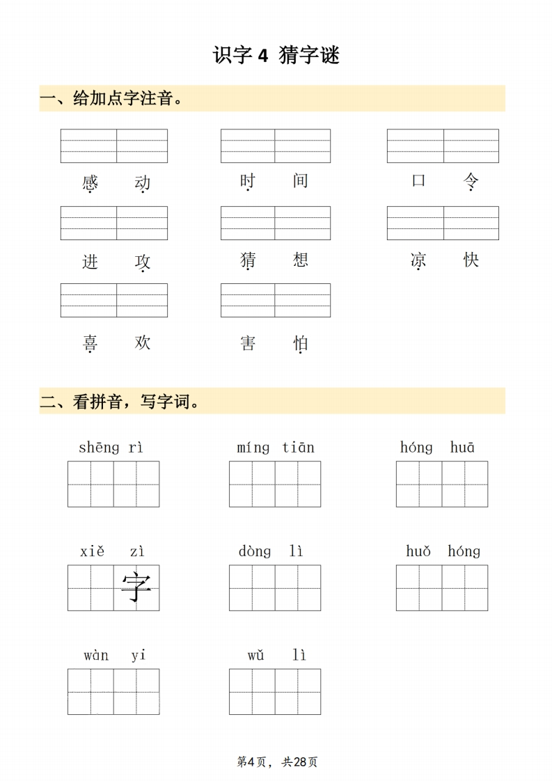 26春一年级下册语文看拼音写词语(28页)985文库13天前发布关注私信4.69MB28页839626春一年级下册语文看拼音写词语(28页)此内容为付费资源,请付费后查看¥3 限时特惠¥9.9黄金会员免费钻石会员免费登录购买付费资源 开学季半价抢会员,享受免费下载 点击开通 文章目录 1 封面图 2 文档部分预览截图 3 下载地址 第1页 / 共28页 第2页 / 共28页 第3页 / 共28页 第4页 / 共28页 试读已结束,还剩24页,您可下载完整版后进行离线阅读 版权声明 1 本网站名称: 985文库 2 本站永久网址:https://985wenku.cn 3 本站资源部分来自网络,由老师收集整理,如有侵犯你的权益请联系管理员E-mail:240407401@qq.com 我们会第一时间进行审核删除。 开通网站会员,全站资料免费下载 THE END未分类 文本预览 2026春季新版一年级下册看拼音写词语识字1春夏秋冬一、给加点字注音。秋霜风吹落地下降雪飘游鱼池水出入二、看拼音,写字词。chun tiandong richun yǔchui fengkai huadong tianXuěhuafei niǎofei ji垂第1页,共28页 查看更多 收起部分 喜欢就支持一下吧点赞6 分享QQ空间微博QQ好友海报分享复制链接收藏